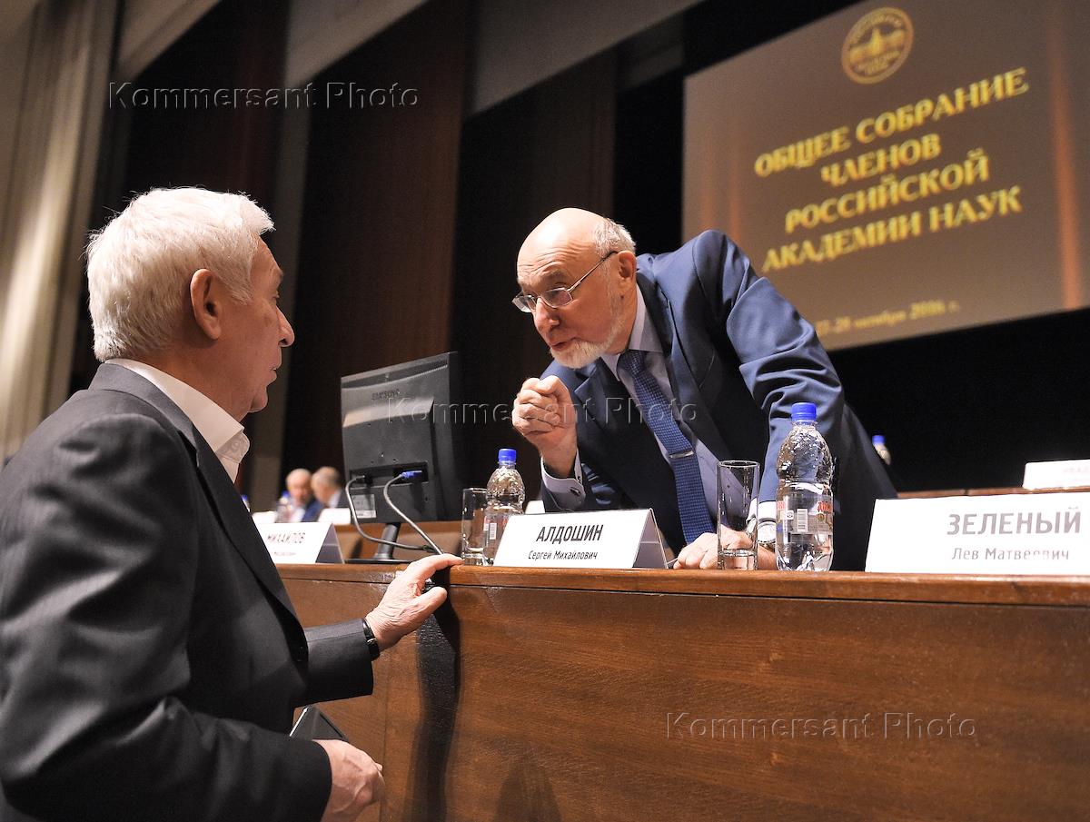 Общее собрание членов Российской академии наук (РАН) состоялось в Большом зале РАН. Слева направо:…