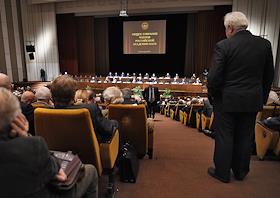 Утверждение протоколов счетной комиссии по итогам тайного голосования по выборам членов РАН и иностранных членов РАН в Большом зале РАН.