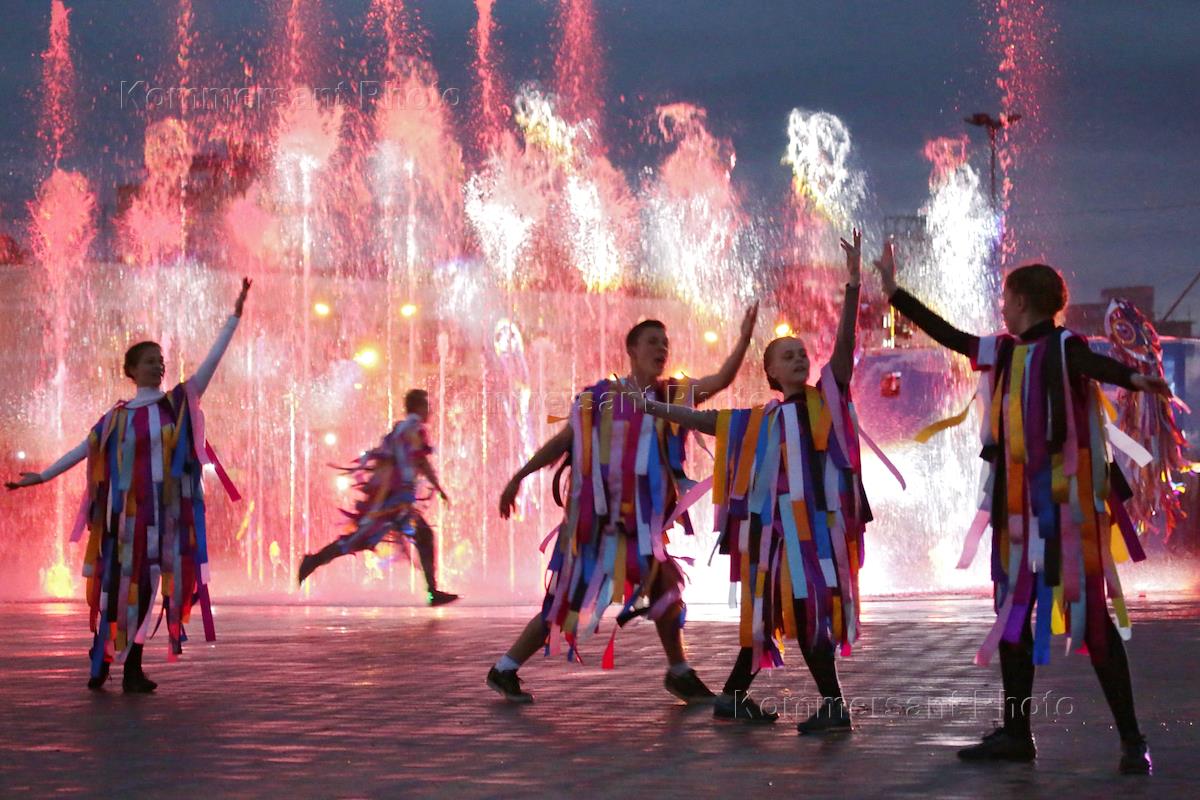 Празднование Дня города Перми. Новый фонтан на городской эспланаде.
