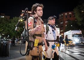 Жанровая фотография. Празднование Halloween (Хэллоуина) в Нью-Йорке на Манхэттене. Мужчины в…