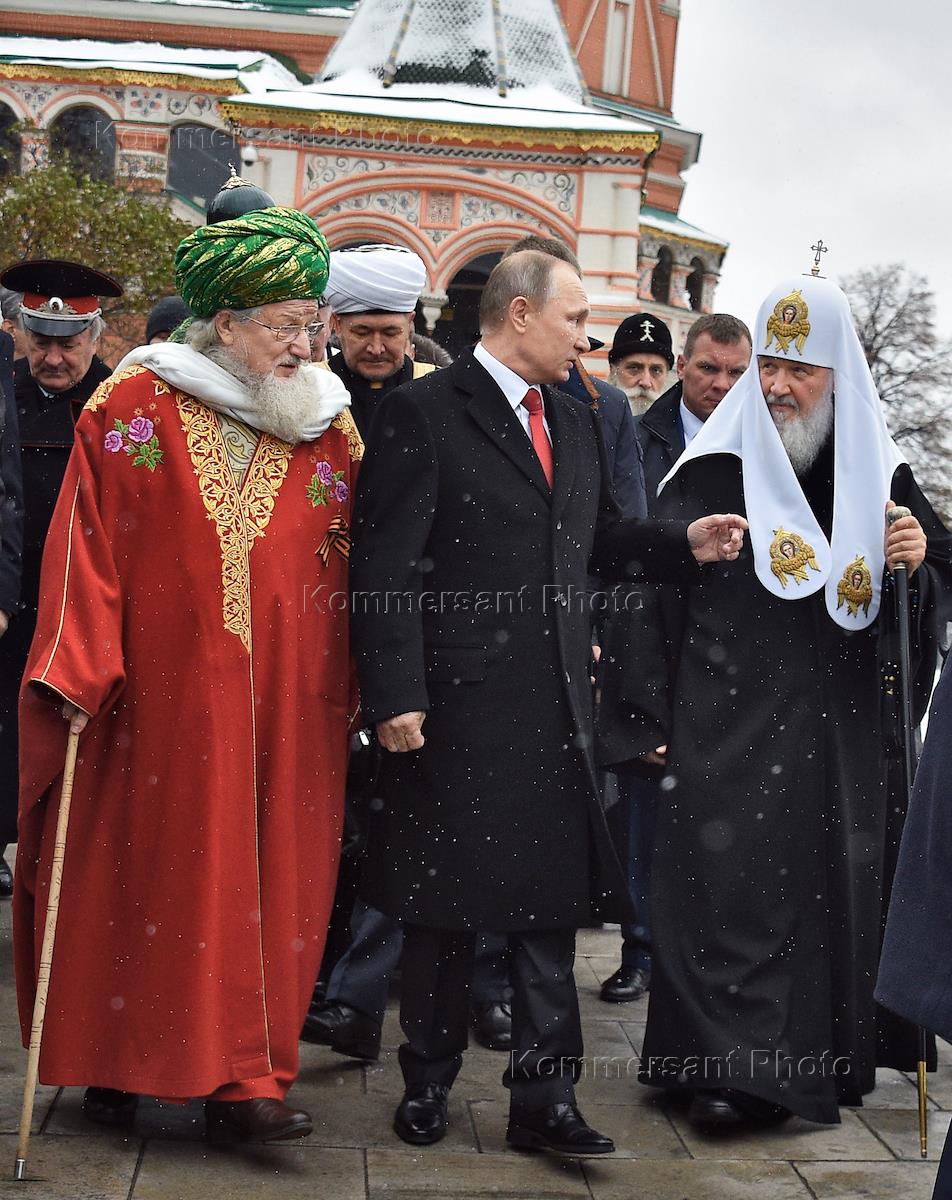 Патриарх Московский и всея Руси Кирилл (слева), муфтий, председатель Духовного управления мусульман…