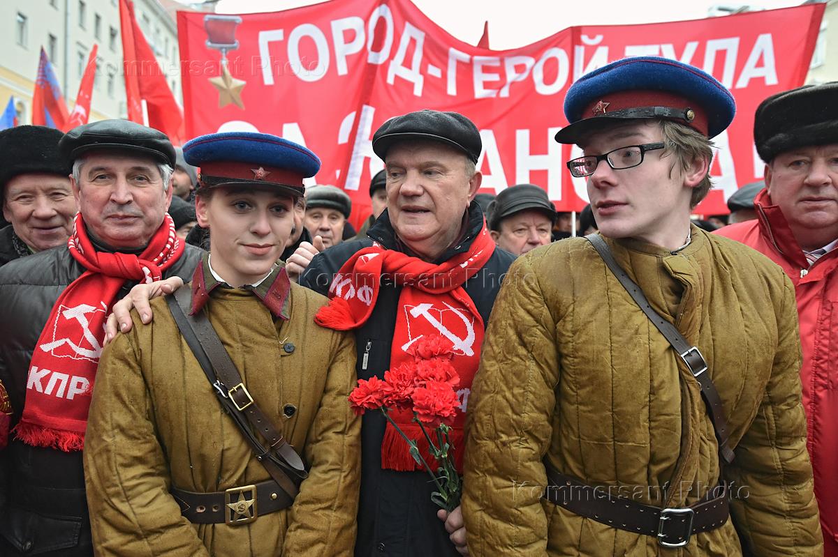 Политика Шествие по Страстному бульвару и митинг-концерт, посвященные 99-й годовщине Великой Октябрьской социалистической революции, организованные Союзом Советских офицеров, Всероссийским женским движением "Надежда России" и партией КПРФ