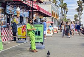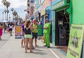 Жанровая фотография. Пляж Венис-бич в Лос-Анджелисе штата Калифорния. Реклама продажи наркотиков.…