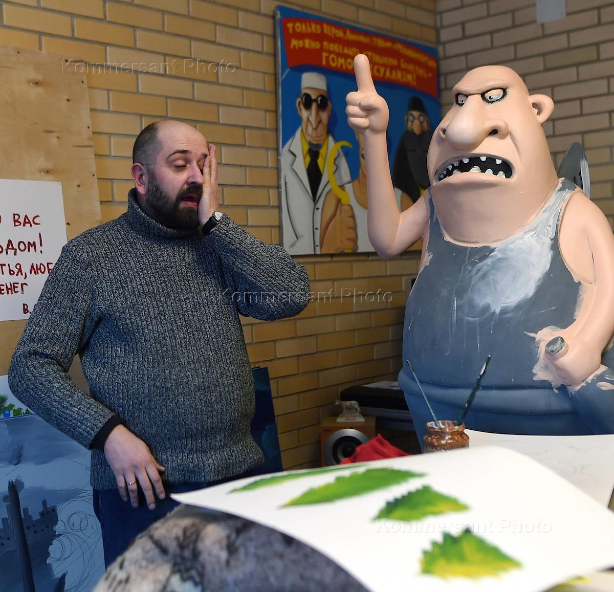 Художник Алексей Куделин (Вася Ложкин) во время интервью в своей мастерской.