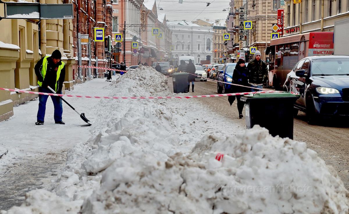 Жанровая фотография. Очистка крыши здания на улице Садовая дом 10 от снега и сосулек.