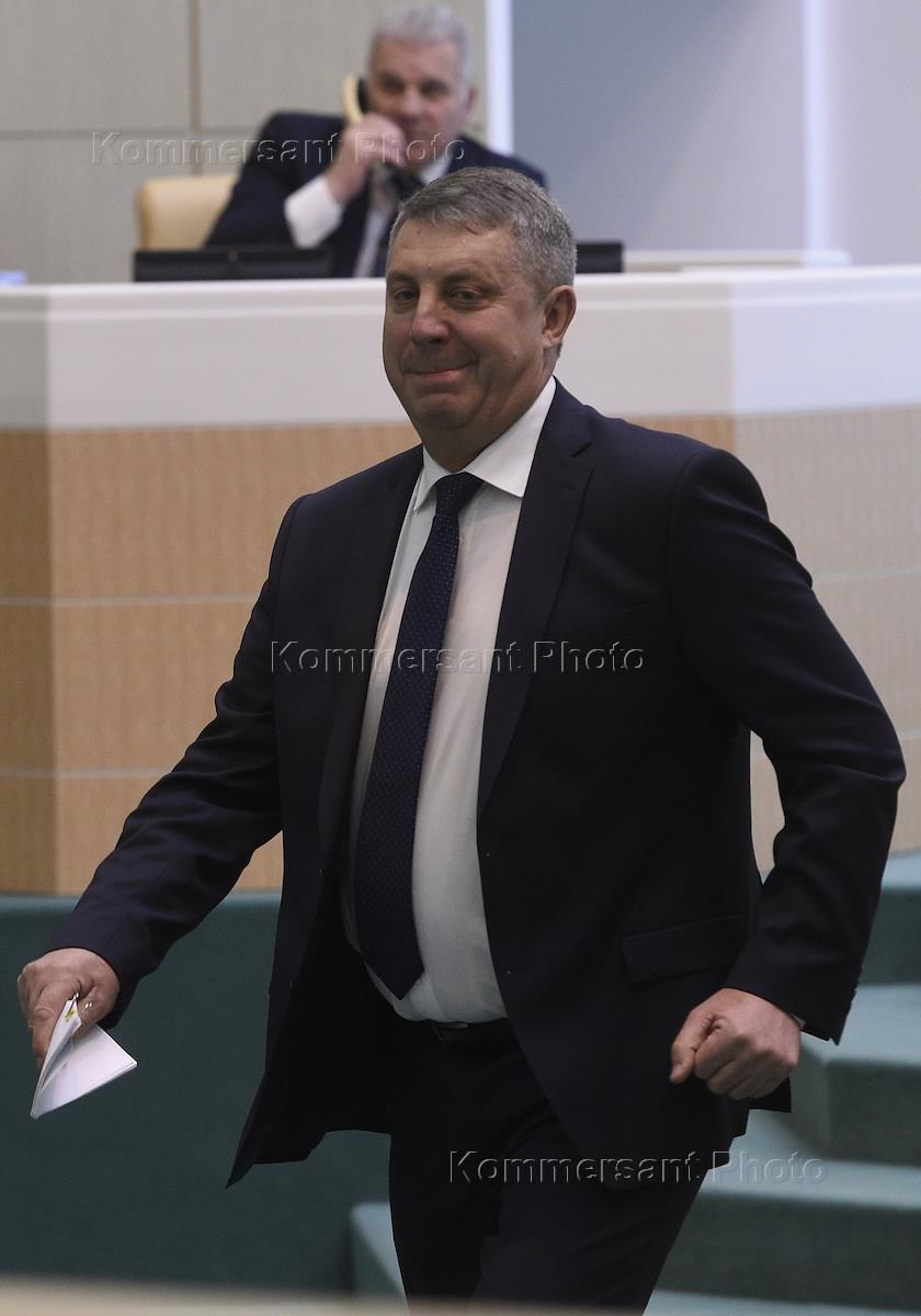 Пленарное заседание Совета Федерации России. Губернатор Брянской области Александр Богомаз во время…