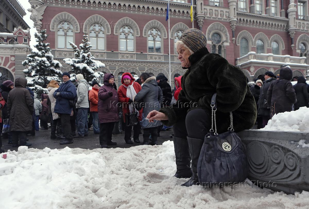 Акция протеста возле здания Национального банка Украины в центре Киева. Около 1 тысячи человек во…