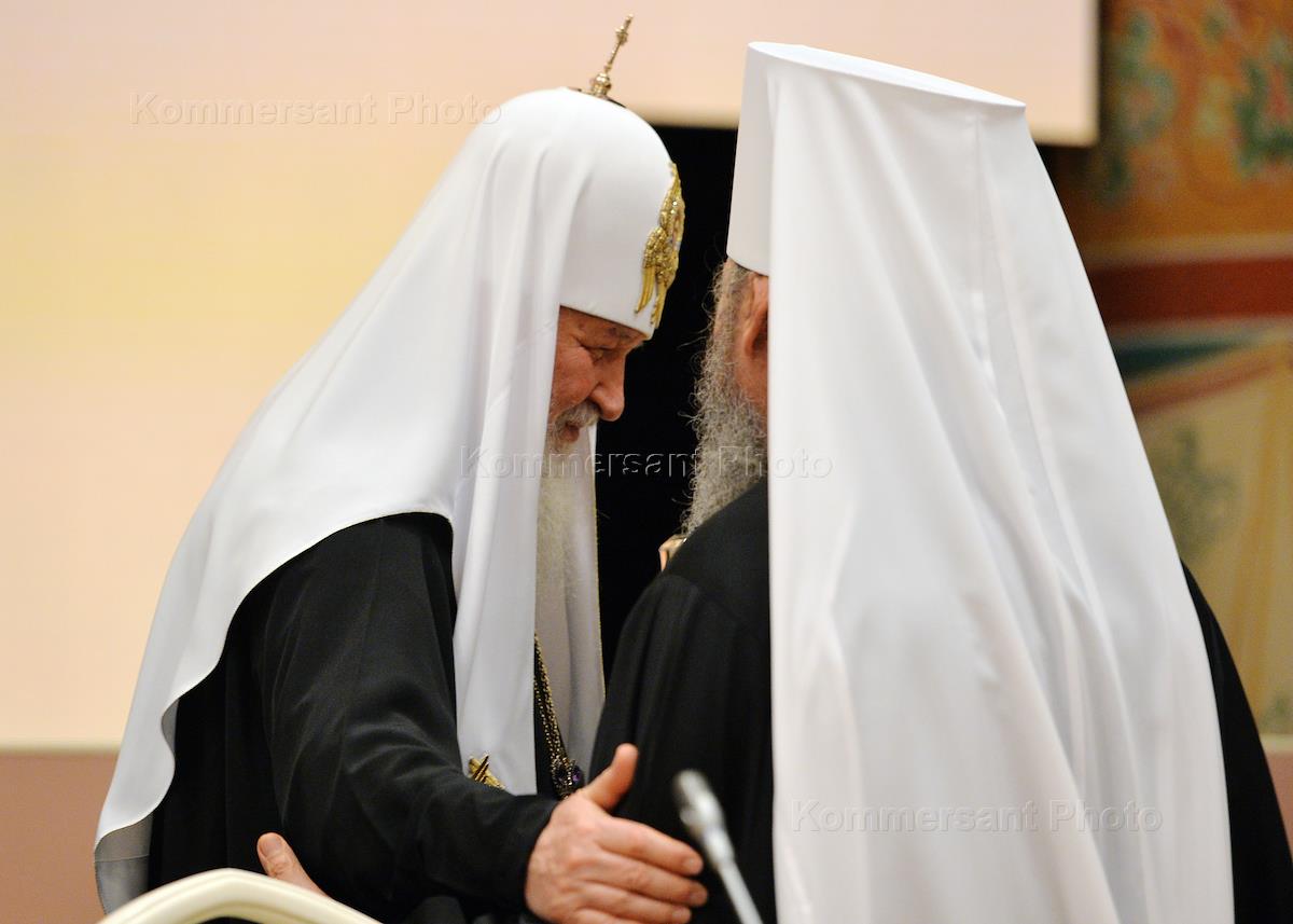 Митрополит Киевский и всея Украины Онуфрий (слева) и Патриарх Московский и всея Руси Кирилл (справа)…