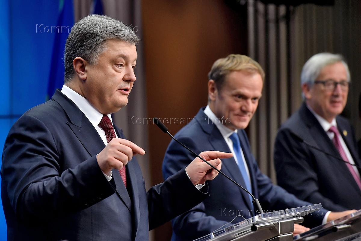 18-й саммит ЕС-Украина в Брюсселе. Слева направо: президент Украины Петр Порошенко, председатель…