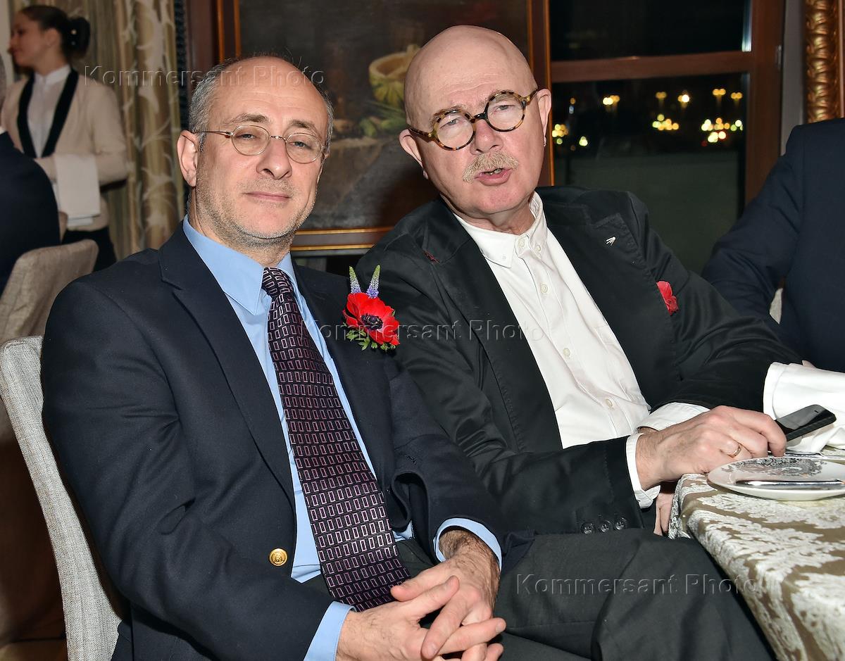 Искусствовед Михаил Каменский (слева) и архитектор Евгений Асс (справа) на торжественном ужине,…
