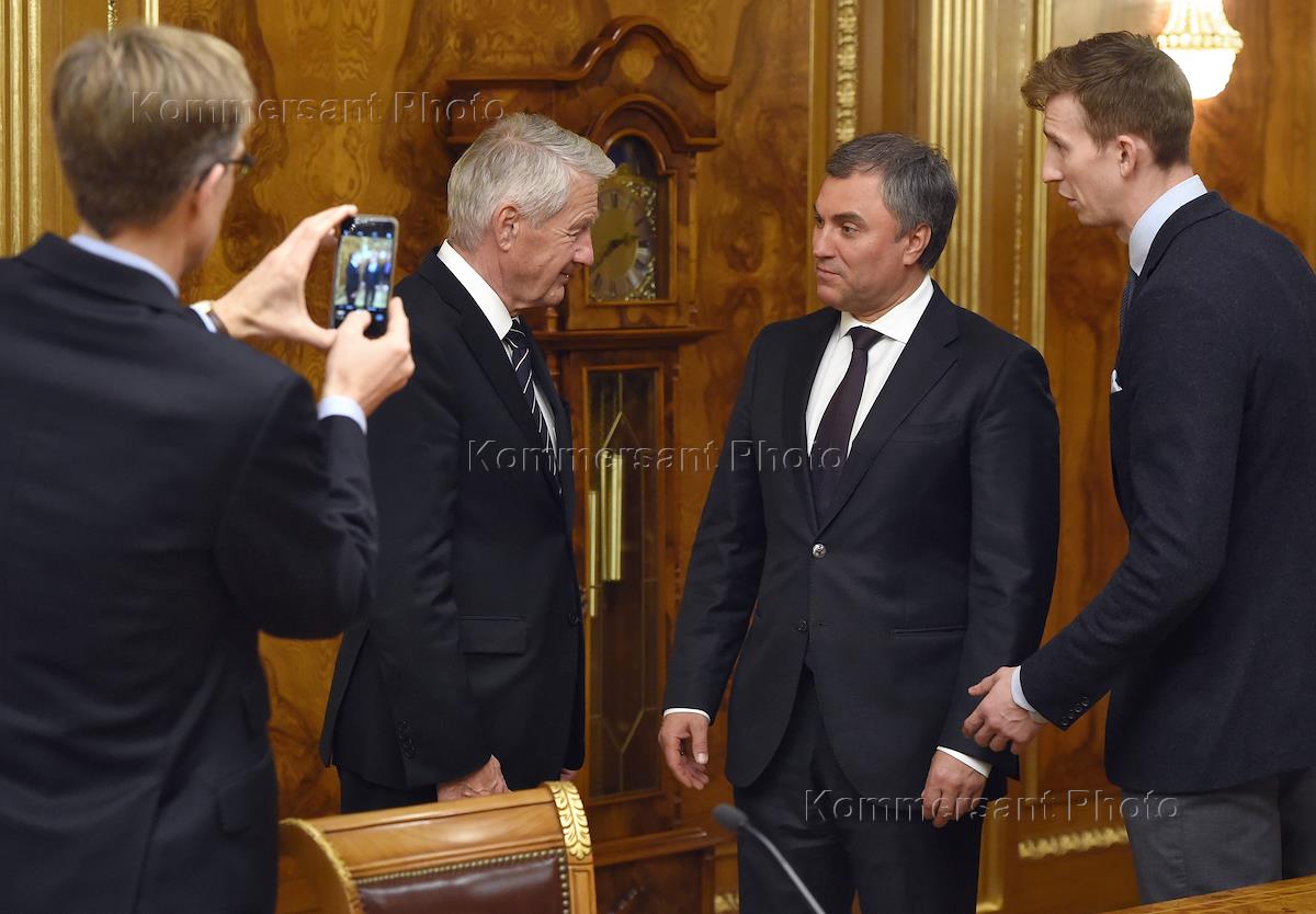 Встреча председателя Госдумы Вячеслава Володина с генеральным секретарем Совета Европы Турбьёрном Ягландом в Госдуме.