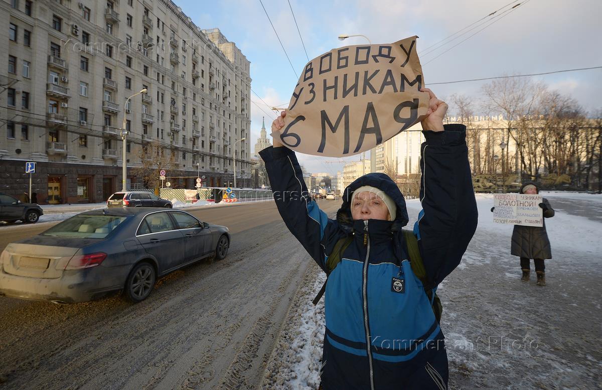 Участники пикета в поддержку "узников Болотной площади" и других политзаключенных на Лермонтовской…
