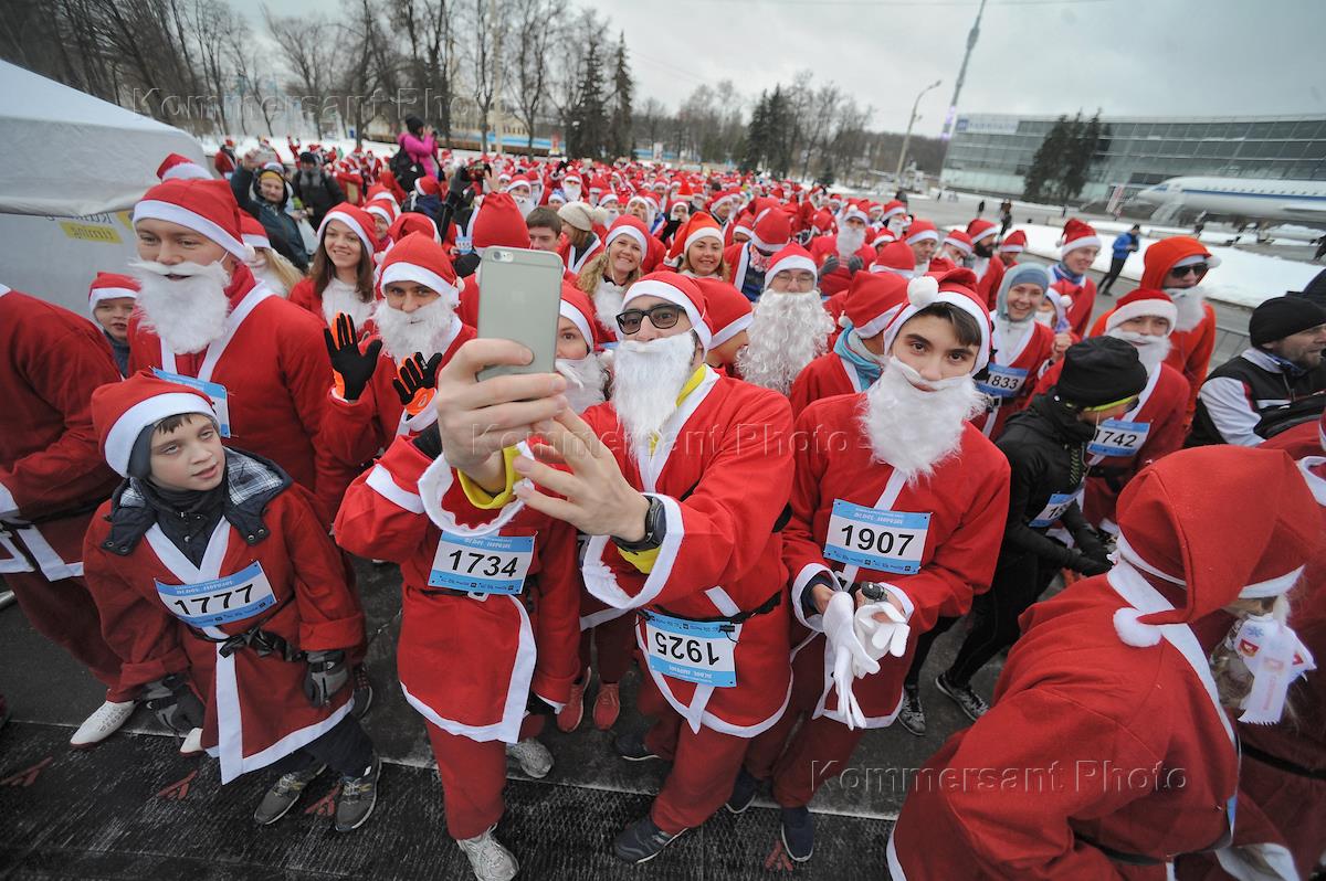 Жанровая фотография. Деды Морозы перед началом забега на ВДНХ.
