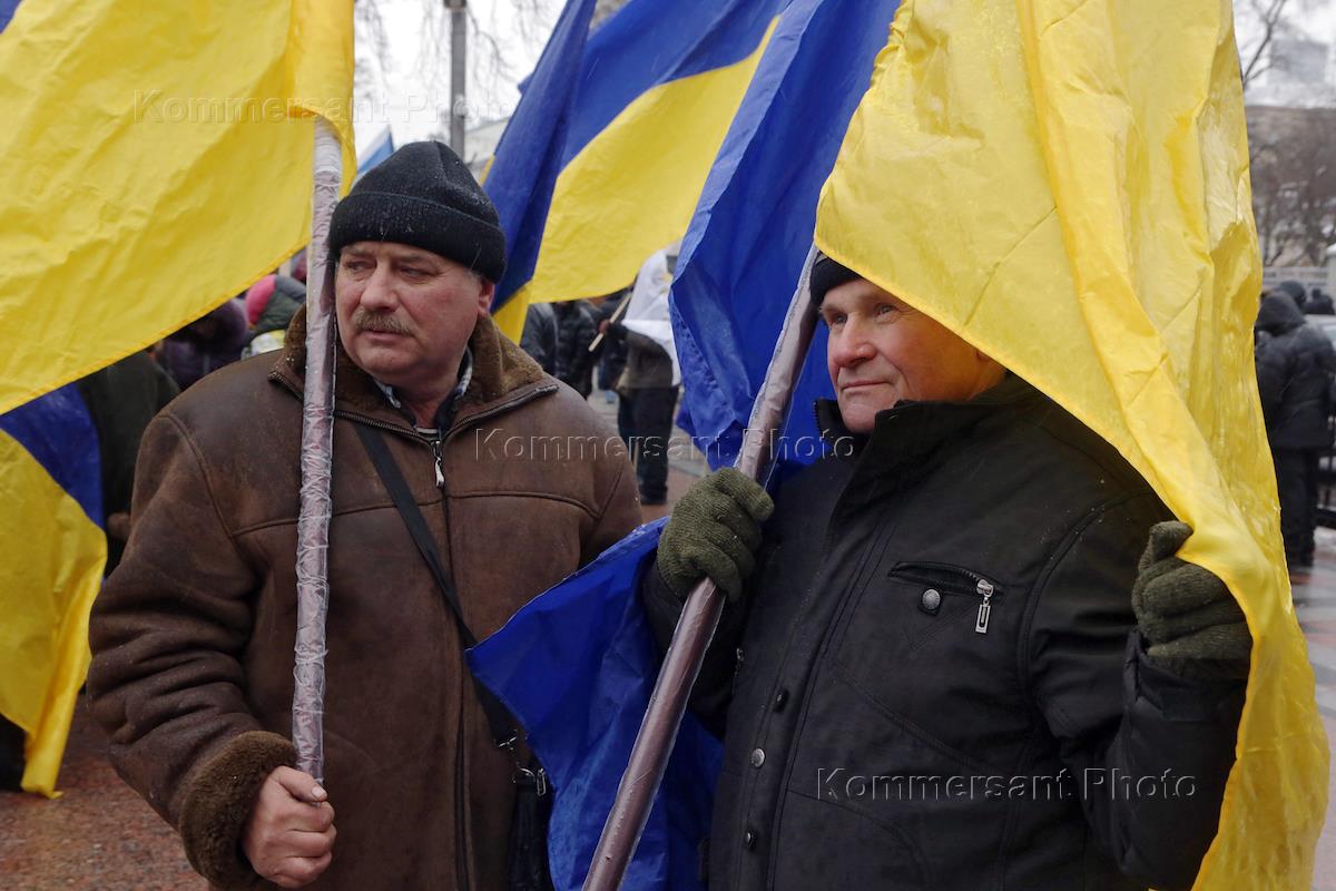 Представители Федерации профсоюзов Украины во время митинга возле здания Верховной рады с…