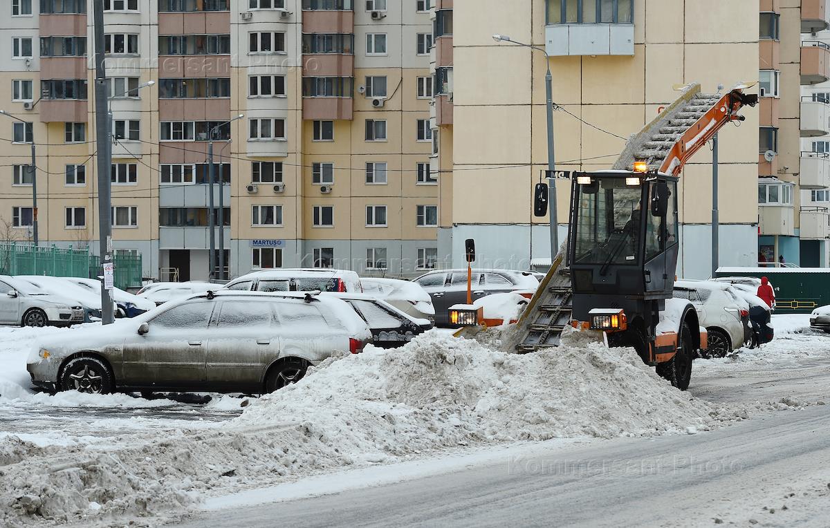 Жанровые фотографии. Уборка снега на одной из улиц Москвы.