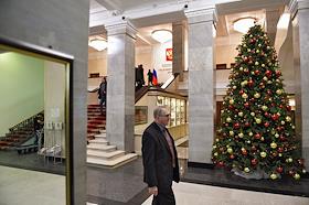 Интерьеры здания Государственной думы (ГД) России. Новогодняя елка в фойе.