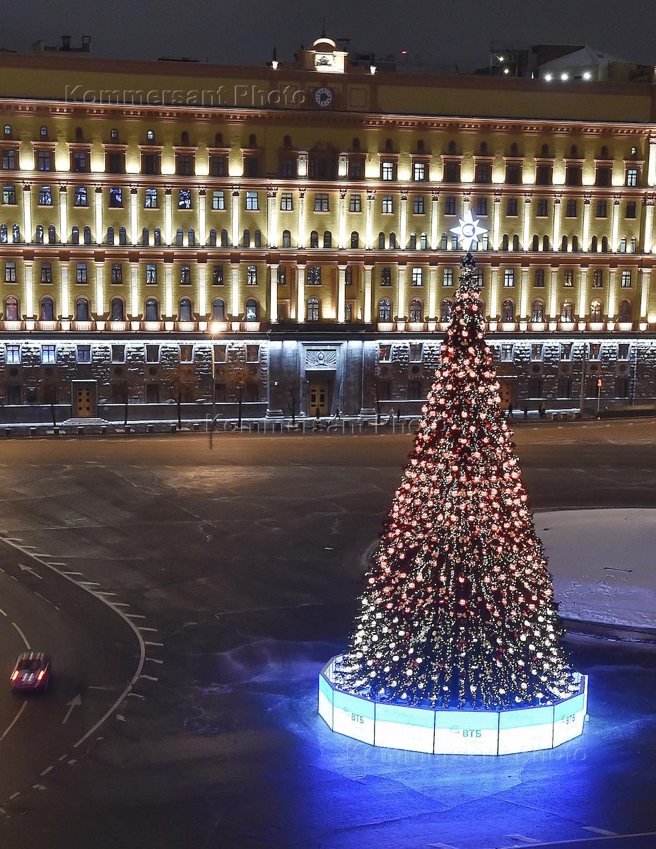 Виды Москвы. Новогодняя елка на Лубянской площади.