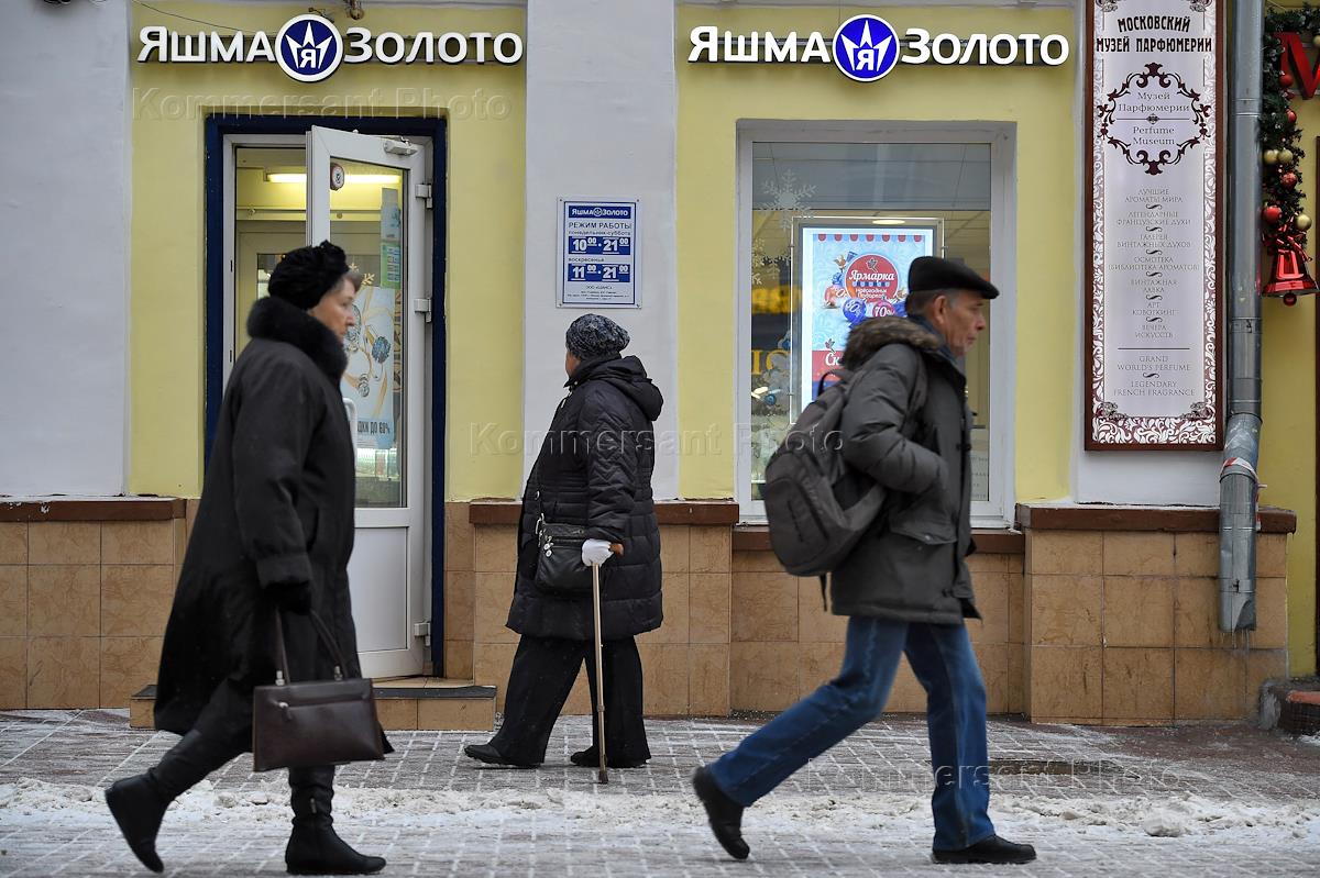 Жанровая фотография. Виды Москвы. Прохожие вблизи фирменного магазина "Яшма-Золото" на Арбате.