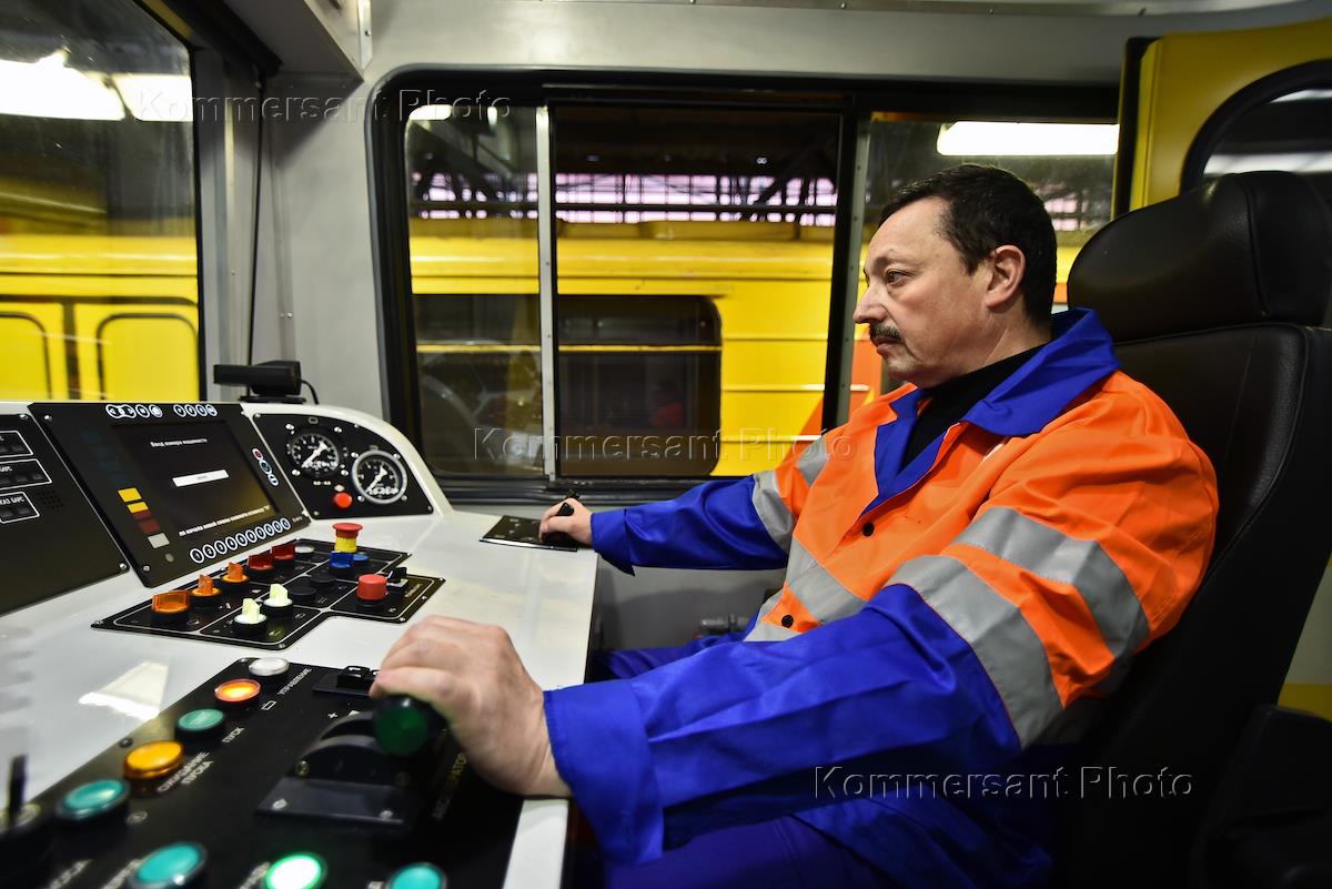 Диагностический комплекс мосметро в электро депо "Северное". Сотрудник комплекса во время работы.