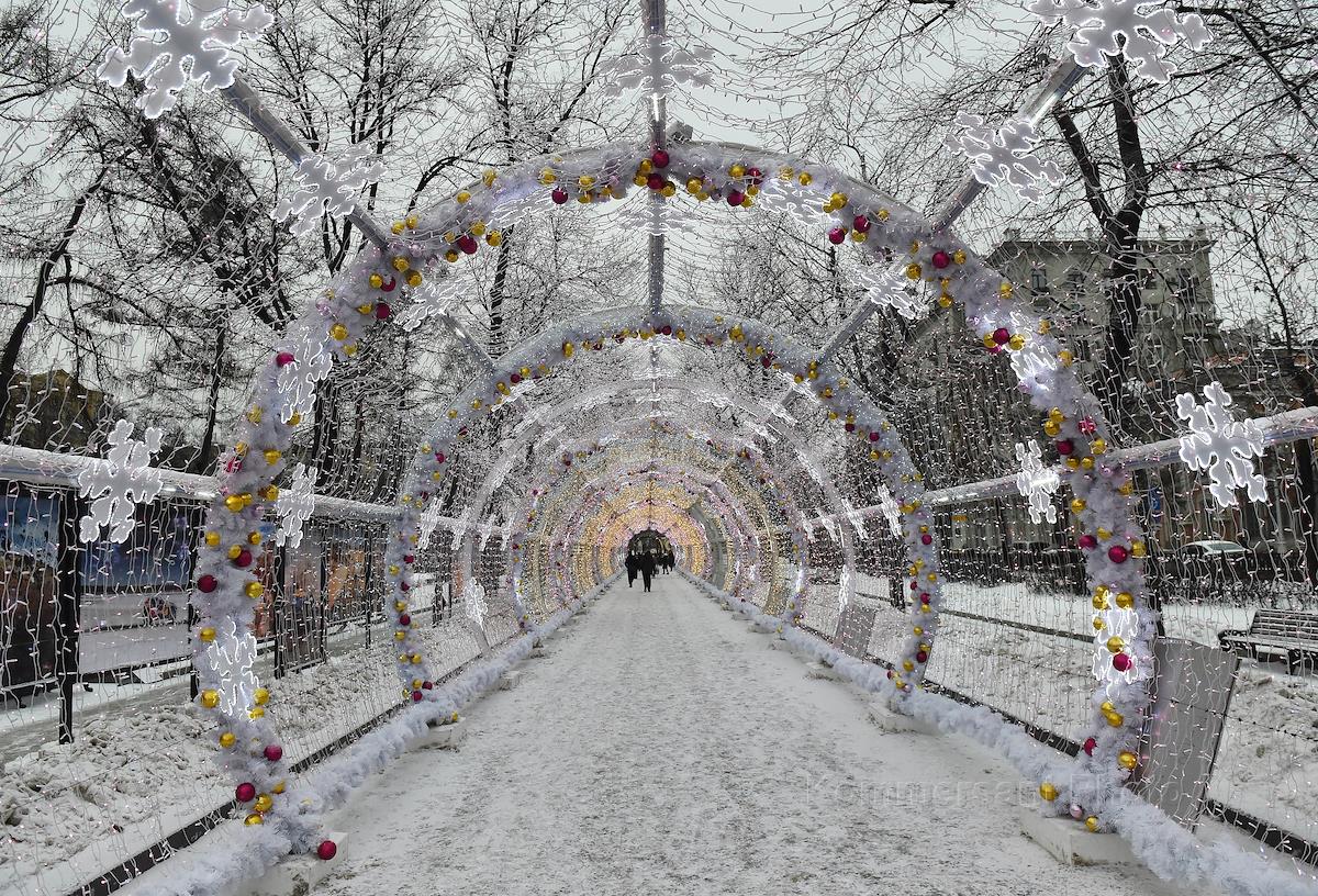Виды Москвы. Новогоднее убранство одного из бульваров.