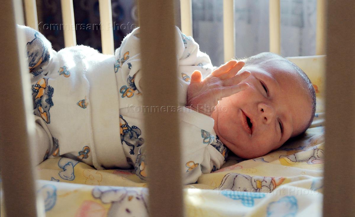 ГБУЗ МО "Балашихинский родильный дом" в микрорайоне Саввино. Новорожденный младенец в кроватке.
