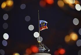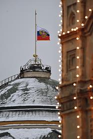 Жанровая фотография. Флаг России, присупщенный в день траура в связи с крушением самолета…
