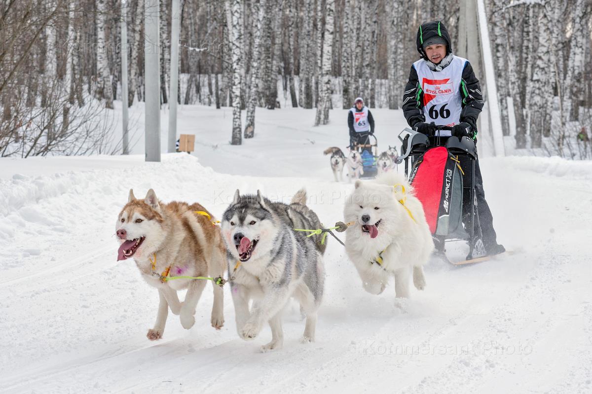 Традиционный Рождественский заезд на собачьих упряжках в Новосибирске. Участник заезда.