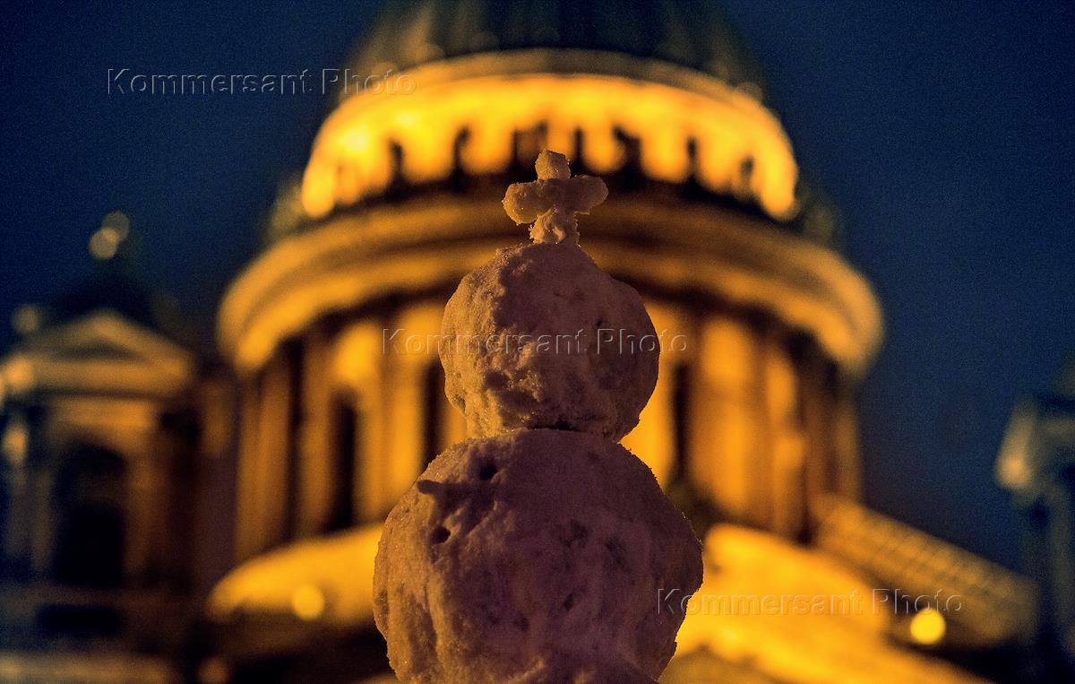 Жанровая фотография . Снежная баба на фоне Исаакиевского собора.