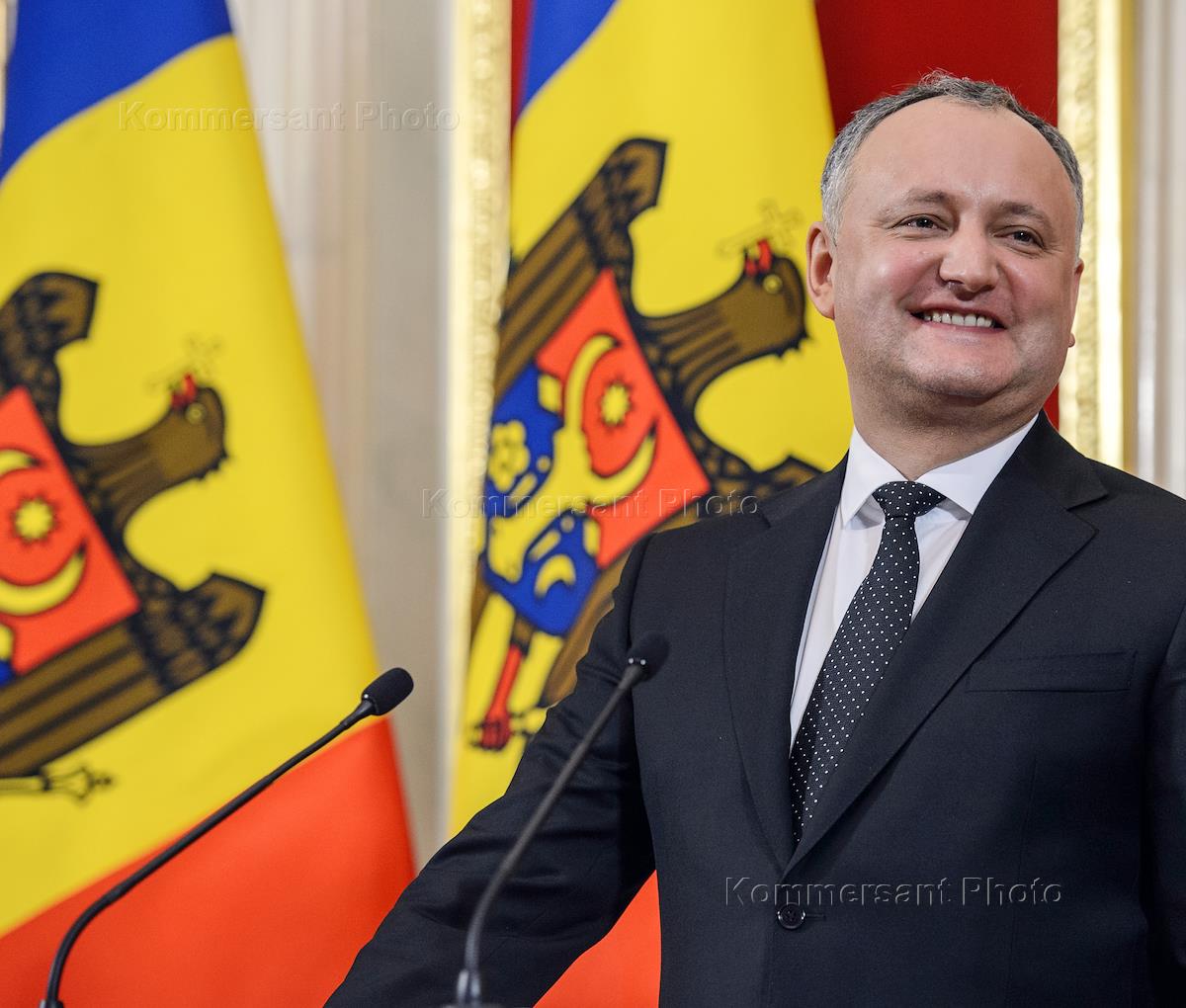 Официальная встреча президента России Владимира Путина и президента Молдавии Игоря Додона. Слева…