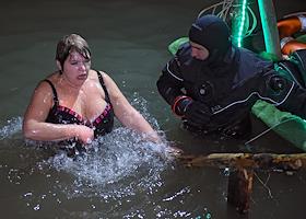 Крещенские купания в пруду во время праздника Крещения Господня.