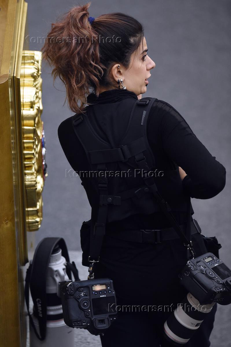 Пленарное заседание Государственной думы (ГД) России. Женщина-фотограф с фотокамерами перед началом…