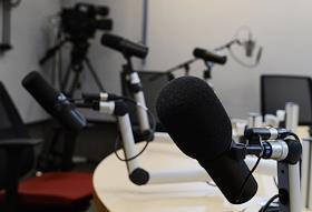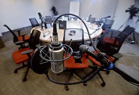 Работа радиостанции "Коммерсантъ FM". Студия радиостанции, для ведущих эфира и гостей программ.