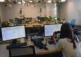Работа радиостанции "Коммерсантъ FM". Световое оборудование студии эфира .