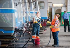 Электродепо "Новогиреево" Московского метрополитена. Помывка состава перед работой.