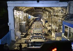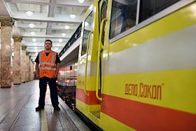 Локомотив для маневровых и вспомогательных работ "Мотовоз" на станции метро "Комсомольская"…