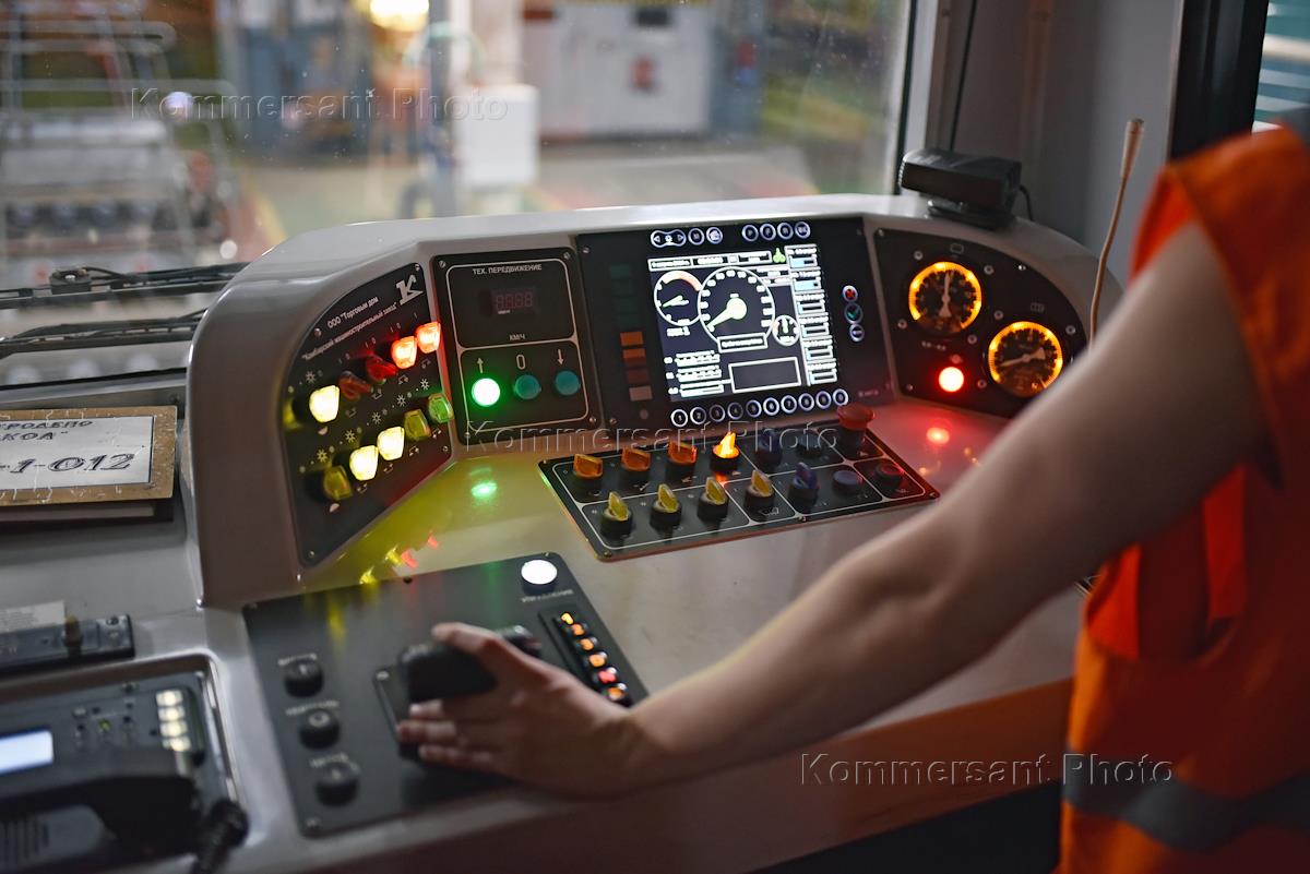 Локомотив для маневровых и вспомогательных работ "Мотовоз" в Московском метрополитене. Пульт…