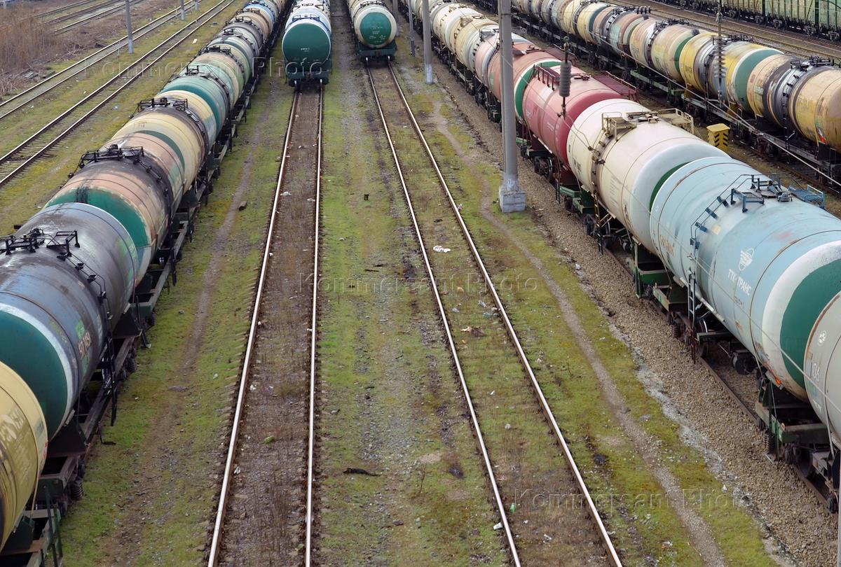Жанровая фотография. Железнодорожные товарные составы на станции.