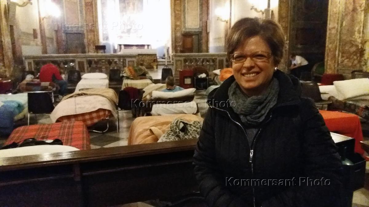 Общество Община святого Эгидия, открывшая на ночь для бездомных церковь св. Калиста из-за сильных холодов. Лючия Луккини, координатор работы с бездомными католической общины святого Эгидия в церкви святого Калиста.