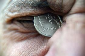 Жанровая фотография. Монета номиналом 1 рубль в виде монокля.