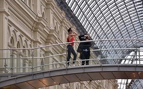 Жанровая фотография. Фотограф и модель на мостике в ГУМе.