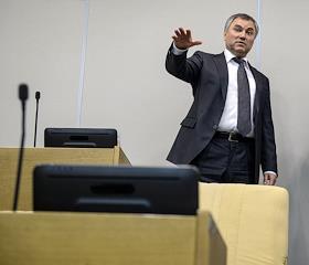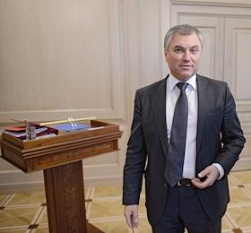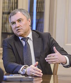 Председатель Государственной думы (ГД) России Вячеслав Володин во время интервью в здании ГД России.