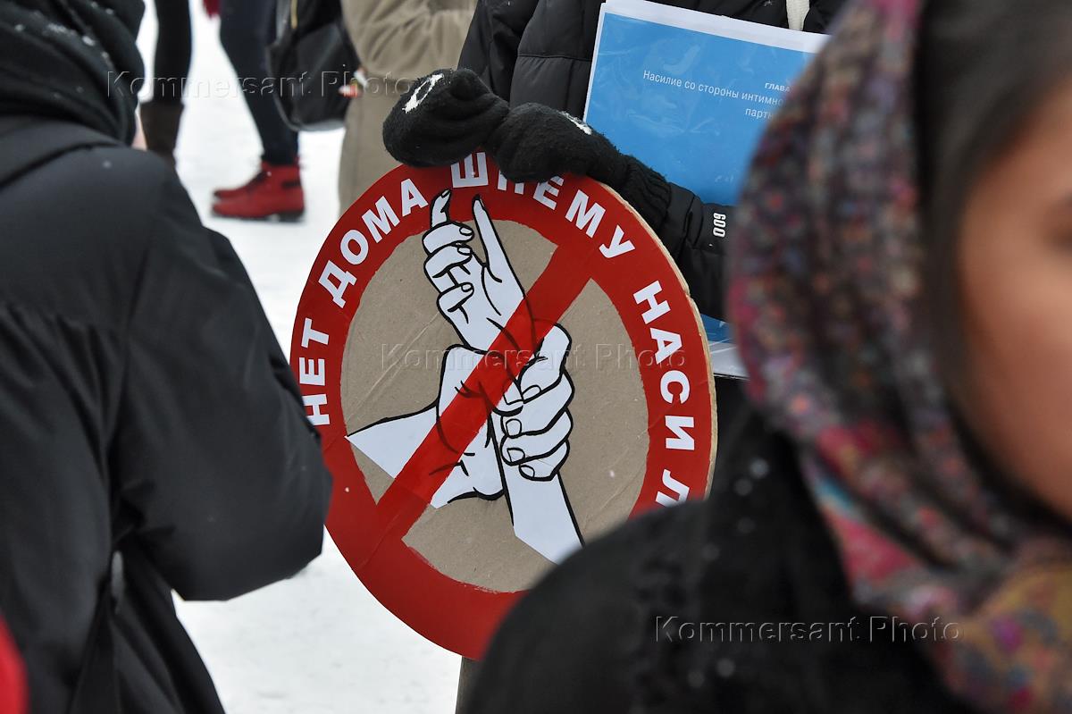 Участники митинга против декриминализации побоев в отношении близких родственников, в гайд-парке в…