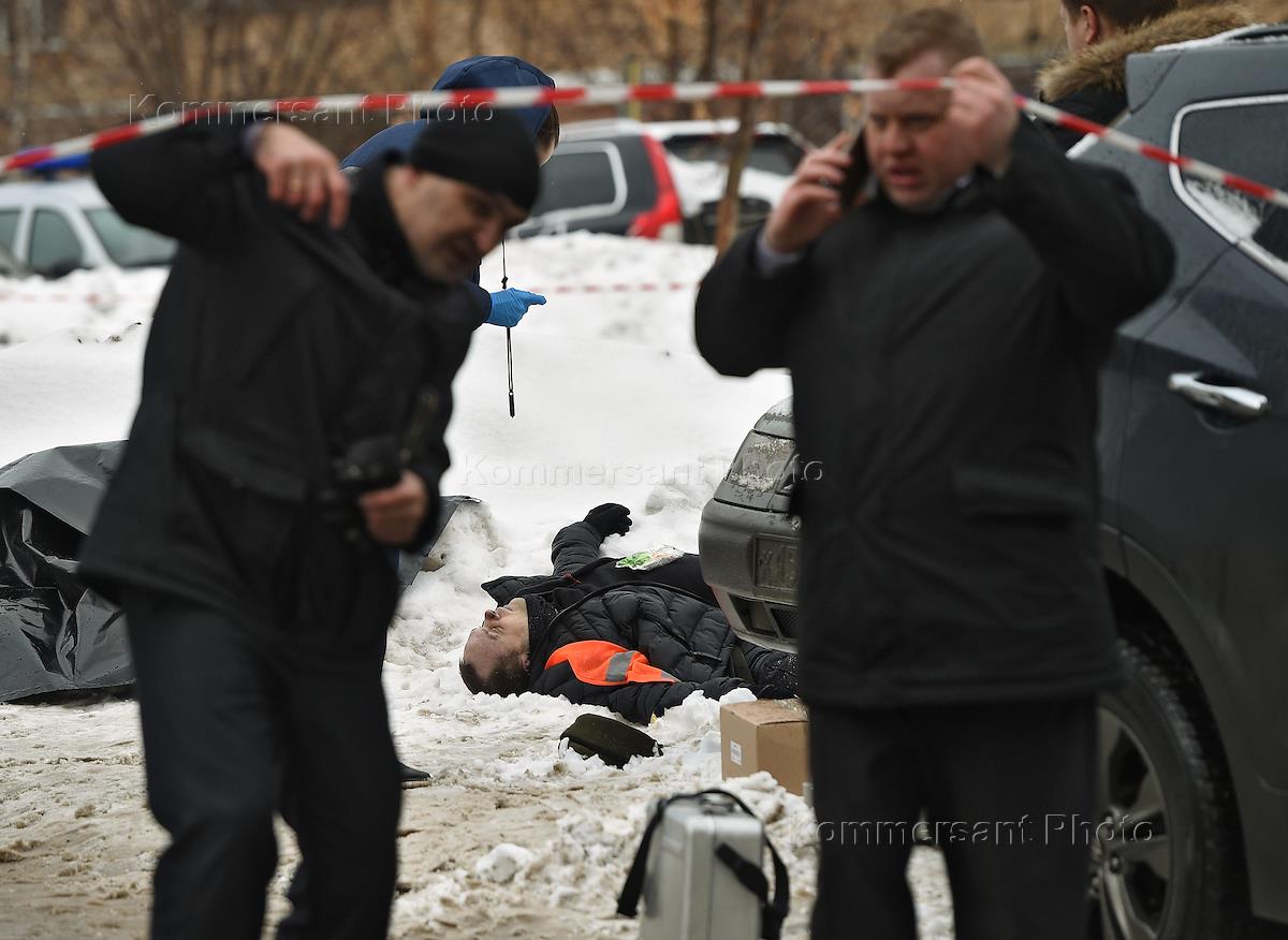 Сотрудники полиции на месте нападения на инкассаторов ФГУП "Главный центр специальной связи" на…