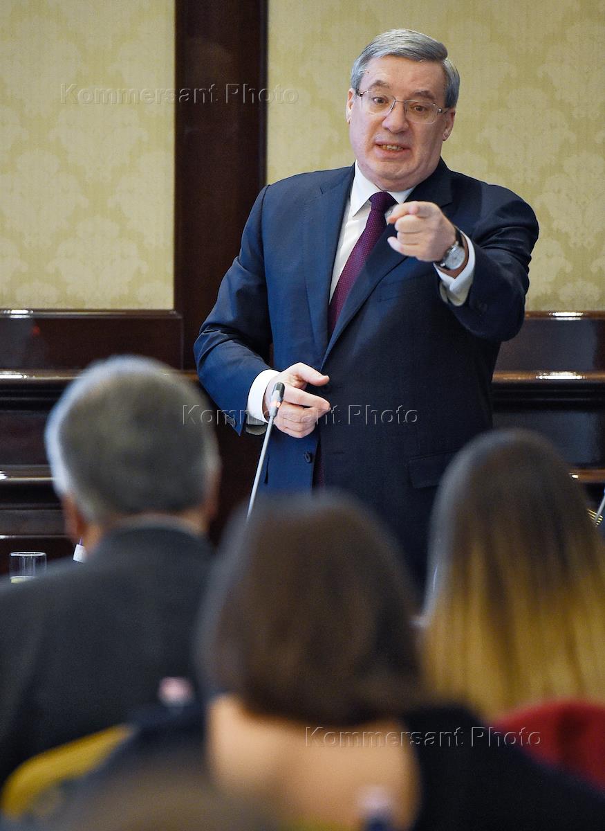 Экономика и бизнес Брифинг губернатора Красноярского края Виктора Толоконского на тему "Инвестирование в Красноярский край", организованный Американской торговой палатой, в отеле The Ritz Carlton Moscow.