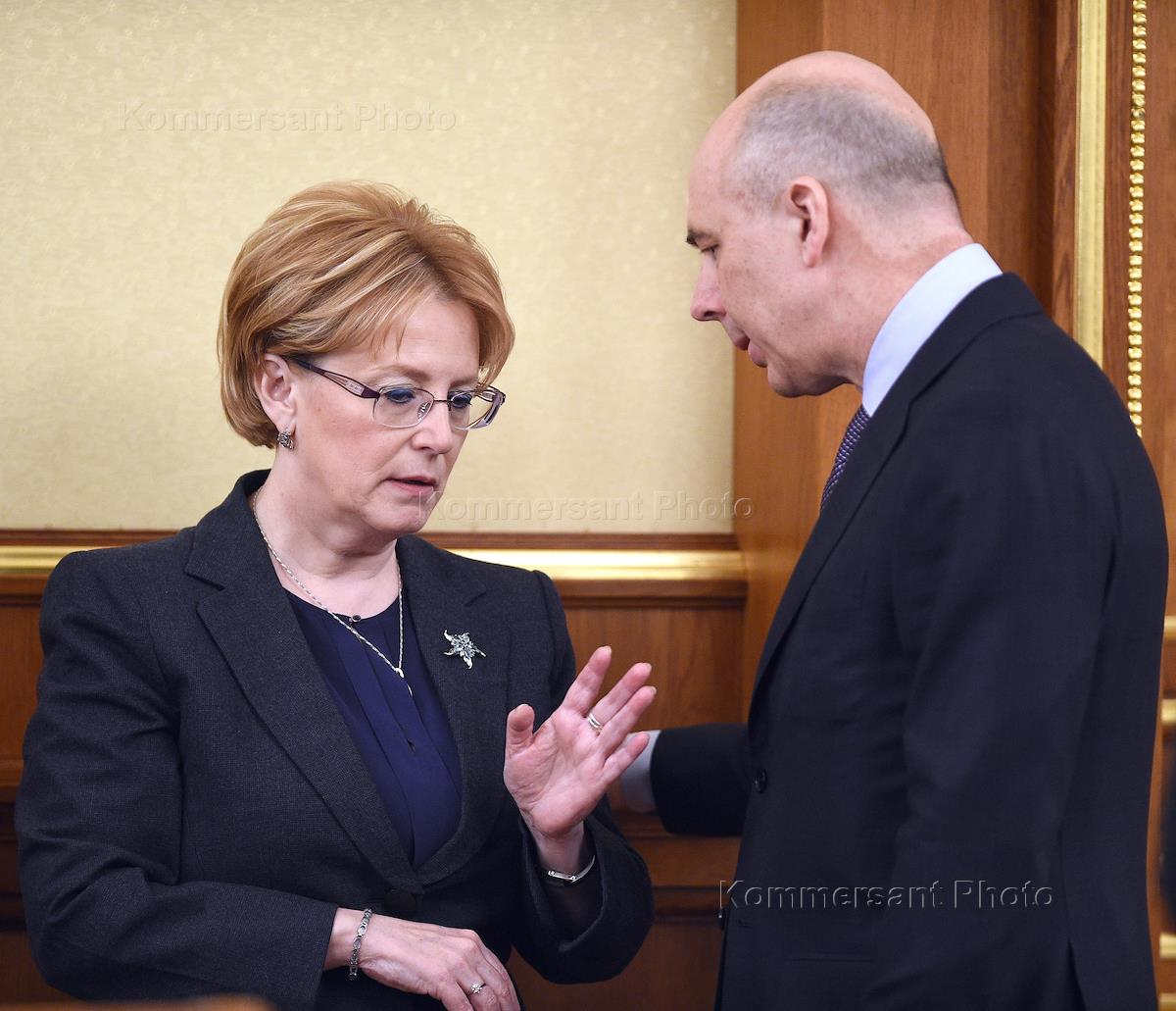 Заседание правительства России. Министр здравоохранения России Вероника Скворцова (слева) и министр…