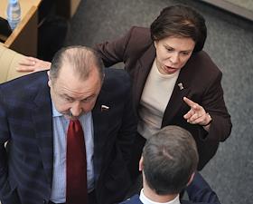 Пленарное заседание Государственной думы (ГД) России. Слева направо: председатель комитета ГД России…