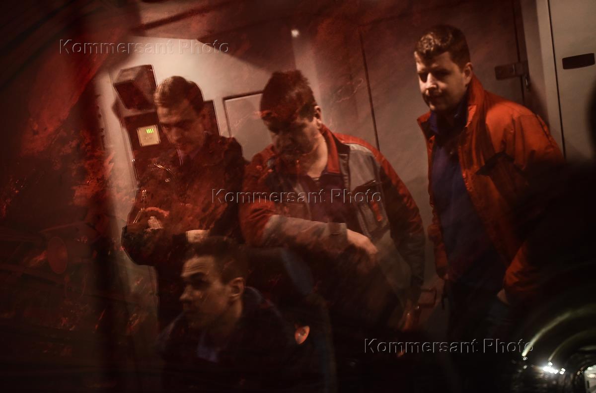 Ходовые испытания поезда нового поколения "Москва" в столичном метрополитене. Сотрудник…