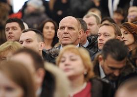 Заместитель председателя правительства РФ Ольга Голодец, полномочный представитель президента РФ в Сибирском федеральном округе Сергей Меняйло и губернатор Новосибирской области Владимир Городецкий на церемонии открытия клинического госпиталя "Авиценна" группы компаний "Мать и дитя".