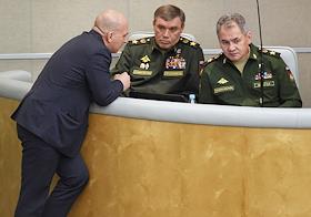 Пленарное заседания Государственной думы России. Слева направо: начальник Генерального штаба…
