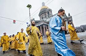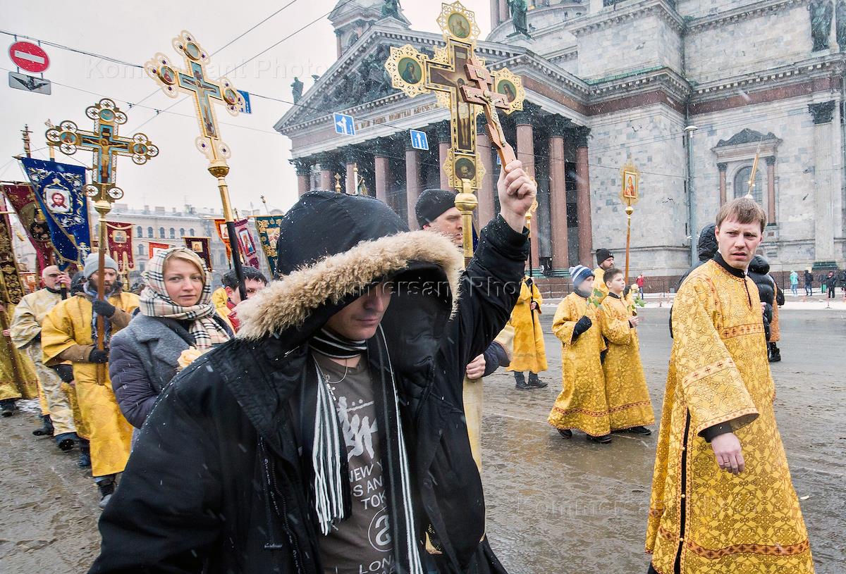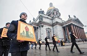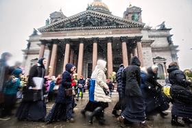 Религия Объединенный крестный ход прихожан Исаакиевского собора, православной молодежи и ветеранов горячих точек с молитвенным пением к преподобному Исаакию Далматскому
